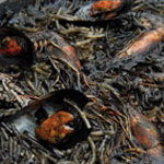 FIDEUA NEGRA: SOFRITO, TINTA DE CALAMAR, SEPIA, CALAMAR, GAMBA PELADA, CARNE DE MEJILLON.